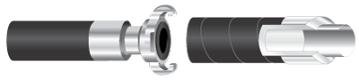 This fitting system consists of a nipple and ferrule saged to the hose as an integrated unit, providing exceptional holding strength against leaks and blow out.